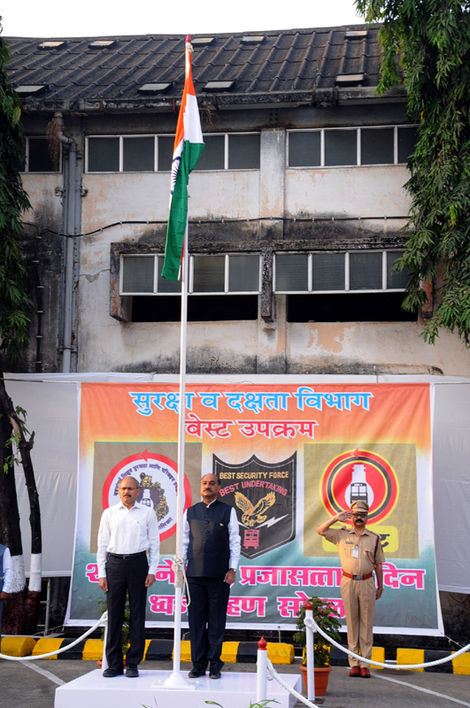 बेस्ट उपक्रमाच्या सुरक्षा व दक्षता विभागाच्या वतीने दिनांक २६ जाने वारी २०२० रोजी कुलाबा मुख्यालय येथे भारताचा ७० वा प्रजासत्ताक दिन साजरा करण्यात आला . त्या निमित्ताने माननीय अध्यक्ष , बेस्ट समिती श्री. अनिल पाटणकर यांच्या शुभ हस्ते ध्वजारोहण करण्यात आले. या प्रसंगी बेस्ट उपक्रमाचे महा व्यवस्थापक श्री. सुरेंद्र कुमार बागड़े तसेच इतर वरिष्ठ अधिकारी व कर्मचारी मोठ्या संख्येने उपस्थित होते.