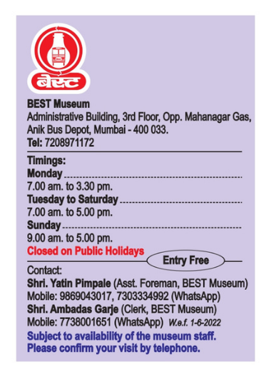 पहिला मजला, बेस्ट भवन, बेस्ट मार्ग कुलाबा, मुंबई ४०० ००१